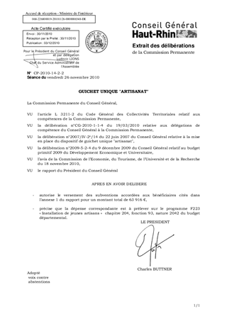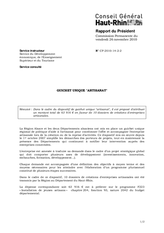 Dans le cadre du dispositif de guichet unique "artisanat", il est proposé d'attribuer un montant total de 63 916 € en faveur de 10 dossiers de créations d'entreprises artisanales.