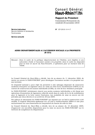 AIDES DEPARTEMENTALES A L’ACCESSION SOCIALE A LA PROPRIETE (H 221)