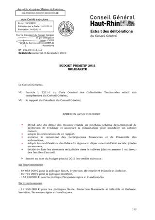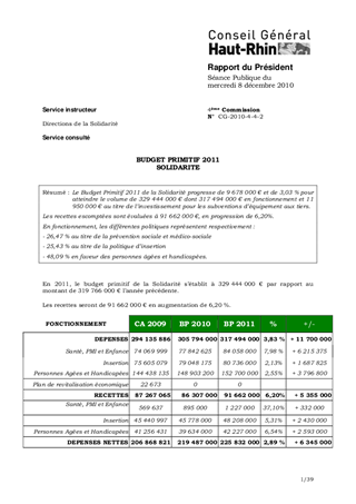 BUDGET PRIMITIF 2011 SOLIDARITE