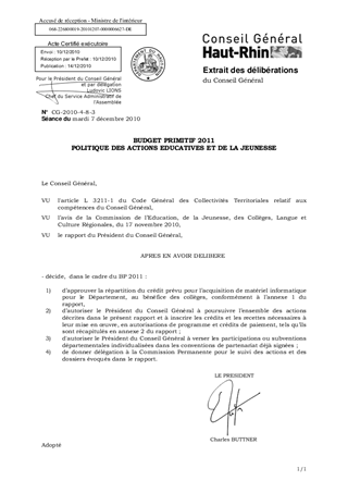 BUDGET PRIMITIF 2011 POLITIQUE DES ACTIONS EDUCATIVES ET DE LA JEUNESSE