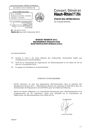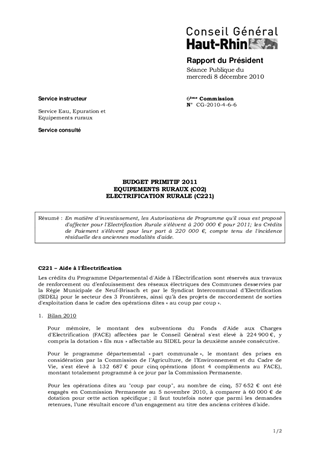 BUDGET PRIMITIF 2011 EQUIPEMENTS RURAUX (C02) ELECTRIFICATION RURALE (C221)