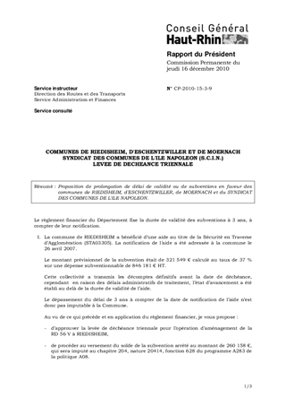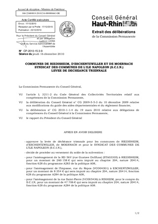 COMMUNES DE RIEDISHEIM, D'ESCHENTZWILLER ET DE MOERNACH SYNDICAT DES COMMUNES DE L'ILE NAPOLEON (S.C.I.N.) LEVEE DE DECHEANCE TRIENNALE