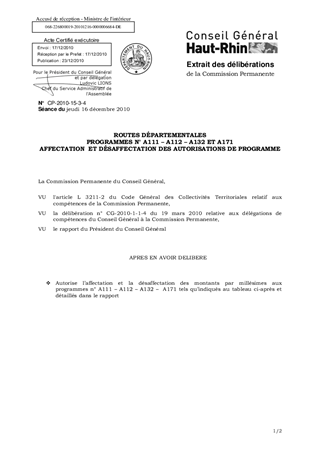ROUTES DÉPARTEMENTALES PROGRAMMES N° A111 – A112 – A132 ET A171 AFFECTATION ET DÉSAFFECTATION DES AUTORISATIONS DE PROGRAMME