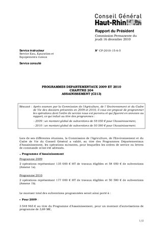 PROGRAMMES DEPARTEMENTAUX 2009 ET 2010CHAPITRE 204ASSAINISSEMENT (C213)