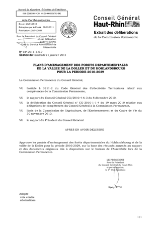 Il vous est proposé de valider les projets de plans d’aménagement établis pour la période 2010-2029 par l’Office National des Forêts (ONF) dans le cadre de la soumission au régime forestier des forêts départementales de la vallée de la Doller et du Hohlandsbourg.