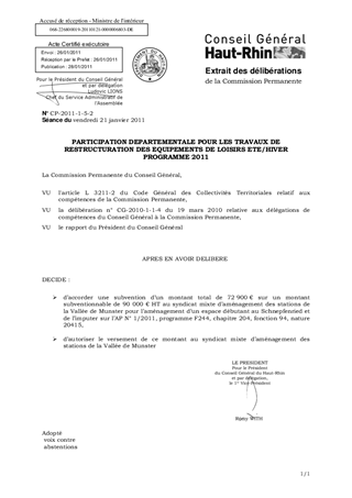 PARTICIPATION DEPARTEMENTALE POUR LES TRAVAUX DE RESTRUCTURATION DES EQUIPEMENTS DE LOISIRS ETE/HIVER PROGRAMME 2011