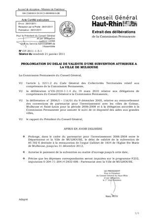 PROLONGATION DU DELAI DE VALIDITE D'UNE SUBVENTION ATTRIBUEE A LA VILLE DE MULHOUSE
