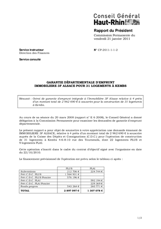 GARANTIE DÉPARTEMENTALE D'EMPRUNT IMMOBILIERE 3F ALSACE POUR 31 LOGEMENTS À KEMBS