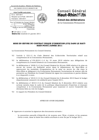 MISE EN ŒUVRE DU CONTRAT UNIQUE D’INSERTION (CUI) DANS LE HAUT-RHIN POUR L’ANNEE 2011