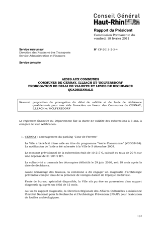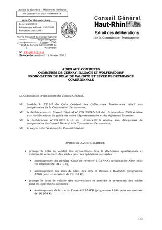 AIDES AUX COMMUNES COMMUNES DE CERNAY, ILLZACH ET WOLFERSDORF PROROGATION DE DELAI DE VALIDITE ET LEVEE DE DECHEANCE QUADRIENNALE