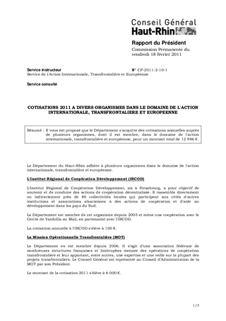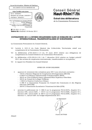 COTISATIONS 2011 A DIVERS ORGANISMES DANS LE DOMAINE DE L'ACTION INTERNATIONALE, TRANSFRONTALIERE ET EUROPEENNE