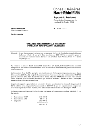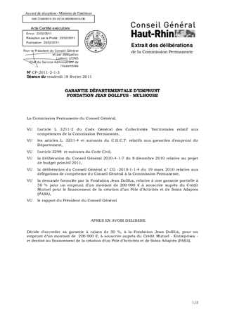 GARANTIE DÉPARTEMENTALE D’EMPRUNT FONDATION JEAN DOLLFUS - MULHOUSE