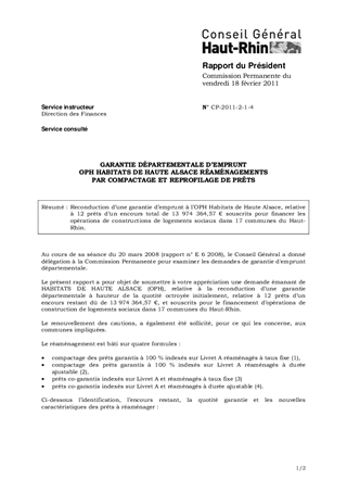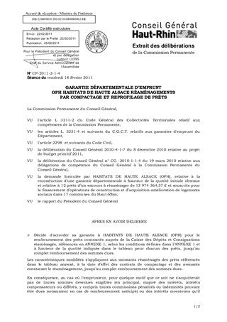 GARANTIE DÉPARTEMENTALE D’EMPRUNT OPH HABITATS DE HAUTE ALSACE RÉAMÉNAGEMENTS PAR COMPACTAGE ET REPROFILAGE DE PRÊTS