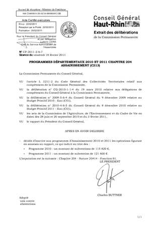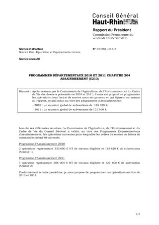 PROGRAMMES DÉPARTEMENTAUX 2010 ET 2011 CHAPITRE 204 ASSAINISSEMENT (C213)