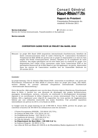 CONVENTION CADRE POUR LE PROJET IBA BASEL 2020
