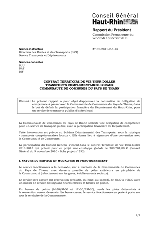 CONTRAT TERRITOIRE DE VIE THUR-DOLLER TRANSPORTS COMPLEMENTAIRES LOCAUX COMMUNAUTE DE COMMUNES DU PAYS DE THANN