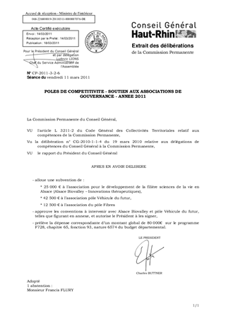 POLES DE COMPETITIVITE - SOUTIEN AUX ASSOCIATIONS DE GOUVERNANCE - ANNEE 2011