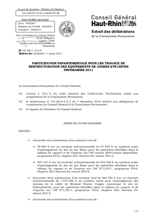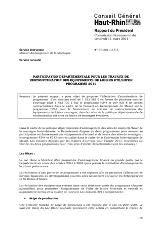 PARTICIPATION DEPARTEMENTALE POUR LES TRAVAUX DE RESTRUCTURATION DES EQUIPEMENTS DE LOISIRS ETE/HIVER PROGRAMME 2011