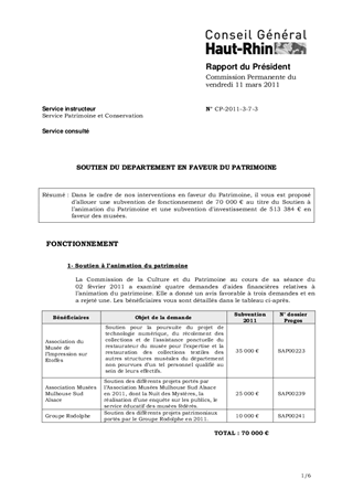 Dans le cadre de nos interventions en faveur du Patrimoine, il vous est proposé d’allouer une subvention de fonctionnement de 70 000 € au titre du Soutien à l’animation du Patrimoine et une subvention d'investissement de 513 384 € en faveur des musées.