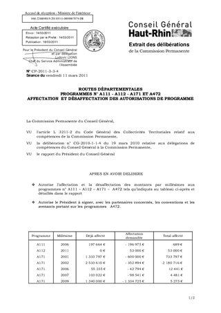 ROUTES DÉPARTEMENTALES PROGRAMMES N° A111 - A112 - A171 ET A472 AFFECTATION ET DÉSAFFECTATION DES AUTORISATIONS DE PROGRAMME