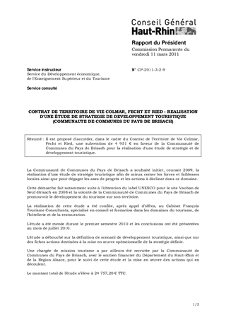 CONTRAT DE TERRITOIRE DE VIE COLMAR, FECHT ET RIED : REALISATION D'UNE ÉTUDE DE STRATEGIE DE DEVELOPPEMENT TOURISTIQUE (COMMUNAUTE DE COMMUNES DU PAYS DE BRISACH)
