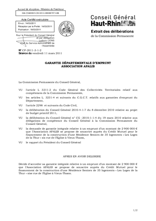 Octroi d'une garantie d'emprunt intégrale à l’Association APALIB relative à un prêt d’un montant de 2 900 000 €, à souscrire pour le financement d’une - Résidence Seniors - à Vieux-Thann.