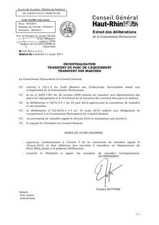 Le présent rapport a pour objet d'approuver la liste des marchés à transférer au Département du Haut-Rhin et d'autoriser le Président à signer les avenants de transfert.
