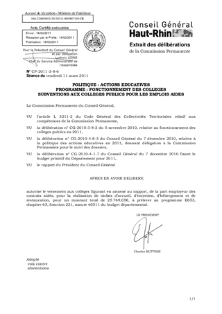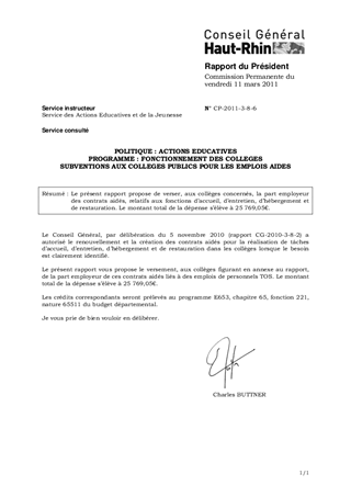 POLITIQUE : ACTIONS EDUCATIVES PROGRAMME : FONCTIONNEMENT DES COLLEGES SUBVENTIONS AUX COLLEGES PUBLICS POUR LES EMPLOIS AIDES