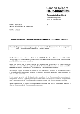 Le présent rapport a pour objet de procéder à la détermination de la composition de la Commission Permanente du Conseil Général.