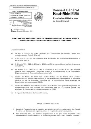 ELECTION DES REPRESENTANTS DU CONSEIL GENERAL A LA COMMISSION DEPARTEMENTALE DE COOPERATION INTERCOMMUNALE