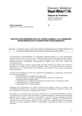 Le présent rapport a pour objet d’élire les représentants du Conseil Général à la Commission Départementale de Coopération Intercommunale (CDCI)
