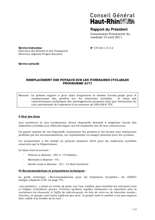REMPLACEMENT DES POTEAUX SUR LES ITINERAIRES CYCLABLES PROGRAMME A171