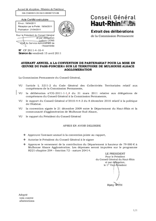 AVENANT ANNUEL A LA CONVENTION DE PARTENARIAT POUR LA MISE EN ŒUVRE DU PASS-FONCIER® SUR LE TERRITOIRE DE MULHOUSE ALSACE AGGLOMERATION