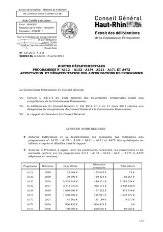 ROUTES DÉPARTEMENTALES PROGRAMMES N° A112 - A132 - A134 - A211 - A171 ET A472 AFFECTATION ET DÉSAFFECTATION DES AUTORISATIONS DE PROGRAMME