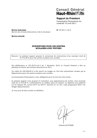 Le présent rapport propose le versement de subventions d’un montant total de 31.973,85 € pour les sorties scolaires avec nuitées.
