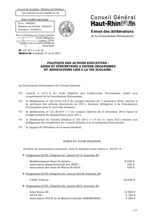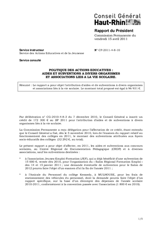 POLITIQUE DES ACTIONS EDUCATIVES : AIDES ET SUBVENTIONS A DIVERS ORGANISMES ET ASSOCIATIONS LIES A LA VIE SCOLAIRE.