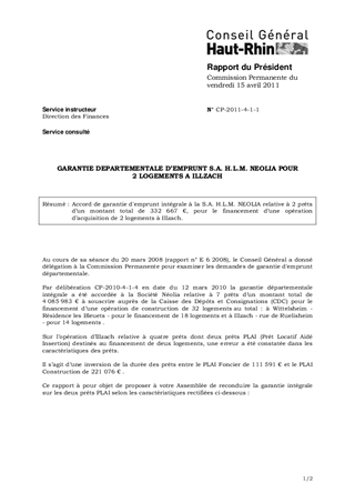 GARANTIE DEPARTEMENTALE D’EMPRUNT S.A. H.L.M. NEOLIA POUR 2 LOGEMENTS A ILLZACH