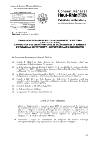 PROGRAMME DEPARTEMENTAL D’AMENAGEMENT DE RIVIERES (C414 - C214 - C114) APPROBATION DES OPÉRATIONS 2011 ET DÉLÉGATION DE LA MAÎTRISE D'OUVRAGE AU DÉPARTEMENT - SUBVENTIONS AUX COLLECTIVITÉS