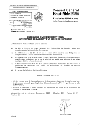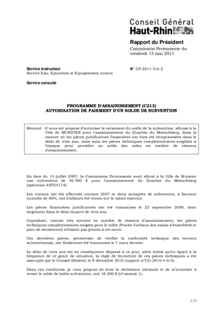 PROGRAMME D'ASSAINISSEMENT (C213) AUTORISATION DE PAIEMENT D'UN SOLDE DE SUBVENTION