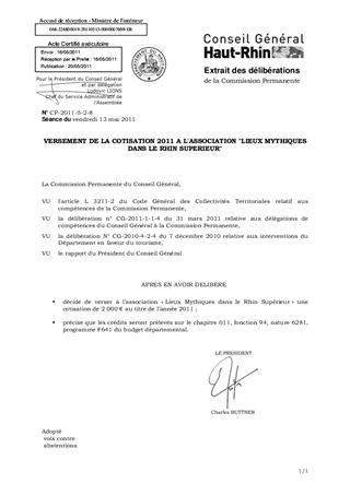 VERSEMENT DE LA COTISATION 2011 A L'ASSOCIATION "LIEUX MYTHIQUES DANS LE RHIN SUPERIEUR"