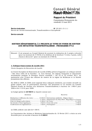 SOUTIEN DÉPARTEMENTAL À 3 PROJETS AU TITRE DU FONDS DE SOUTIEN AUX INITIATIVES TRANSFRONTALIÈRES - PROGRAMME F712
