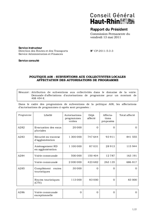 Attribution de subventions aux collectivités dans le domaine de la voirie. Demande d'affectations d'autorisations de programme pour un montant de 408 454 €.