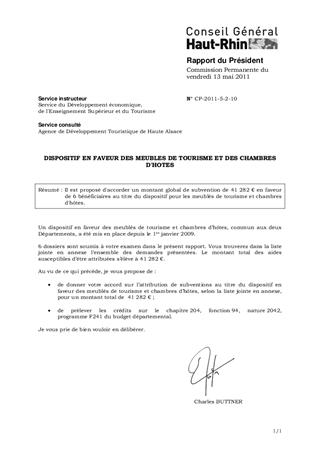 Il est proposé d'accorder un montant global de subvention de 41 282 € en faveur de 6 bénéficiaires au titre du dispositif pour les meublés de tourisme et chambres d'hôtes.
