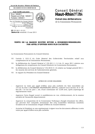 VENTE DE LA MAISON ECOTEX SITUEE A HUSSEREN-WESSERLING PAR APPEL D’OFFRES SOUS PLIS CACHETES