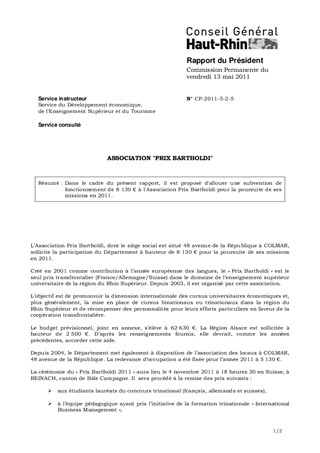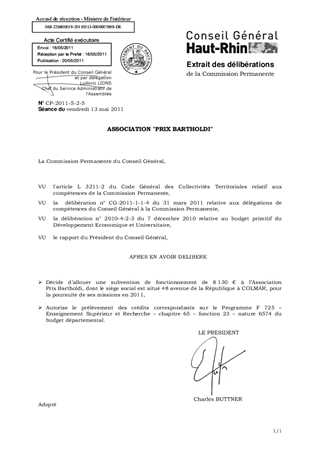 Dans le cadre du présent rapport, il est proposé d'allouer une subvention de fonctionnement de 8 130 € à l'Association Prix Bartholdi pour la poursuite de ses missions en 2011.