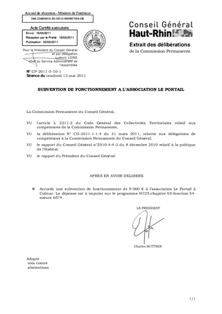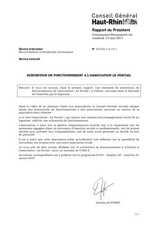 Il vous est soumis, dans le présent rapport, une demande de subvention de fonctionnement de l’association « Le Portail » à Colmar, oeuvrant dans le domaine de l’insertion par le logement.