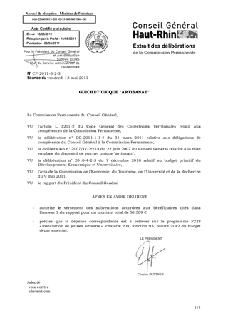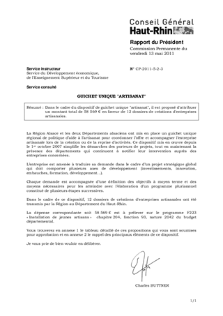 Dans le cadre du dispositif de guichet unique "artisanat", il est proposé d'attribuer un montant total de 58 569 € en faveur de 12 dossiers de créations d'entreprises artisanales.