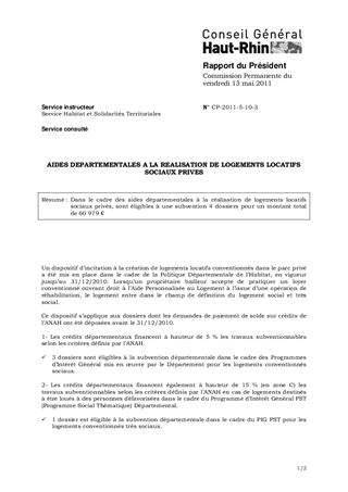 AIDES DEPARTEMENTALES A LA REALISATION DE LOGEMENTS LOCATIFS SOCIAUX PRIVES
