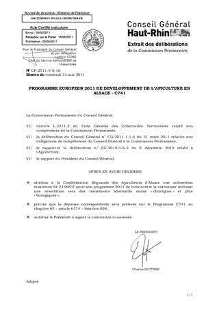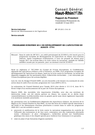 PROGRAMME EUROPEEN 2011 DE DEVELOPPEMENT DE L’APICULTURE EN ALSACE - C741