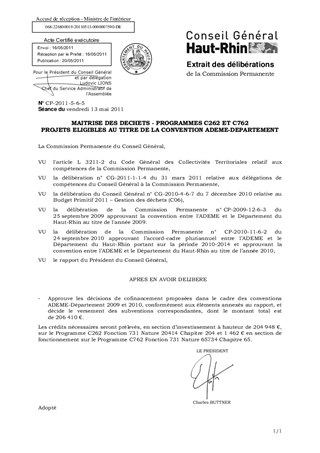 MAITRISE DES DECHETS - PROGRAMMES C262 ET C762 PROJETS ELIGIBLES AU TITRE DE LA CONVENTION ADEME-DEPARTEMENT